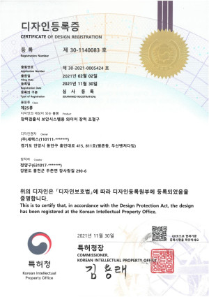 디자인등록증(장력검출식 보안시스템용 와이어 장력 조절구)