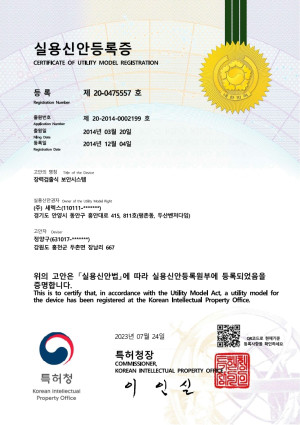 특허증(레이다를이용한 머신러닝 기반 외곽침입 탐지 시스템)