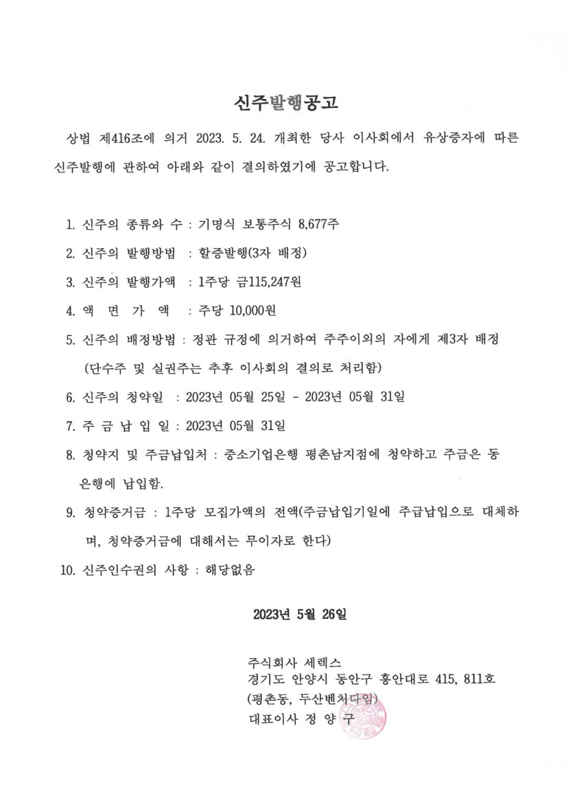 신주발행공고 페이지 정보 관리자 2026.02.19 08:46 조회 322 본문 . 다음글합병에 따른 주권 및 채권자 이의 제출 공고 26.02.19 댓글 0 댓글목록 등록된 댓글이 없습니다.